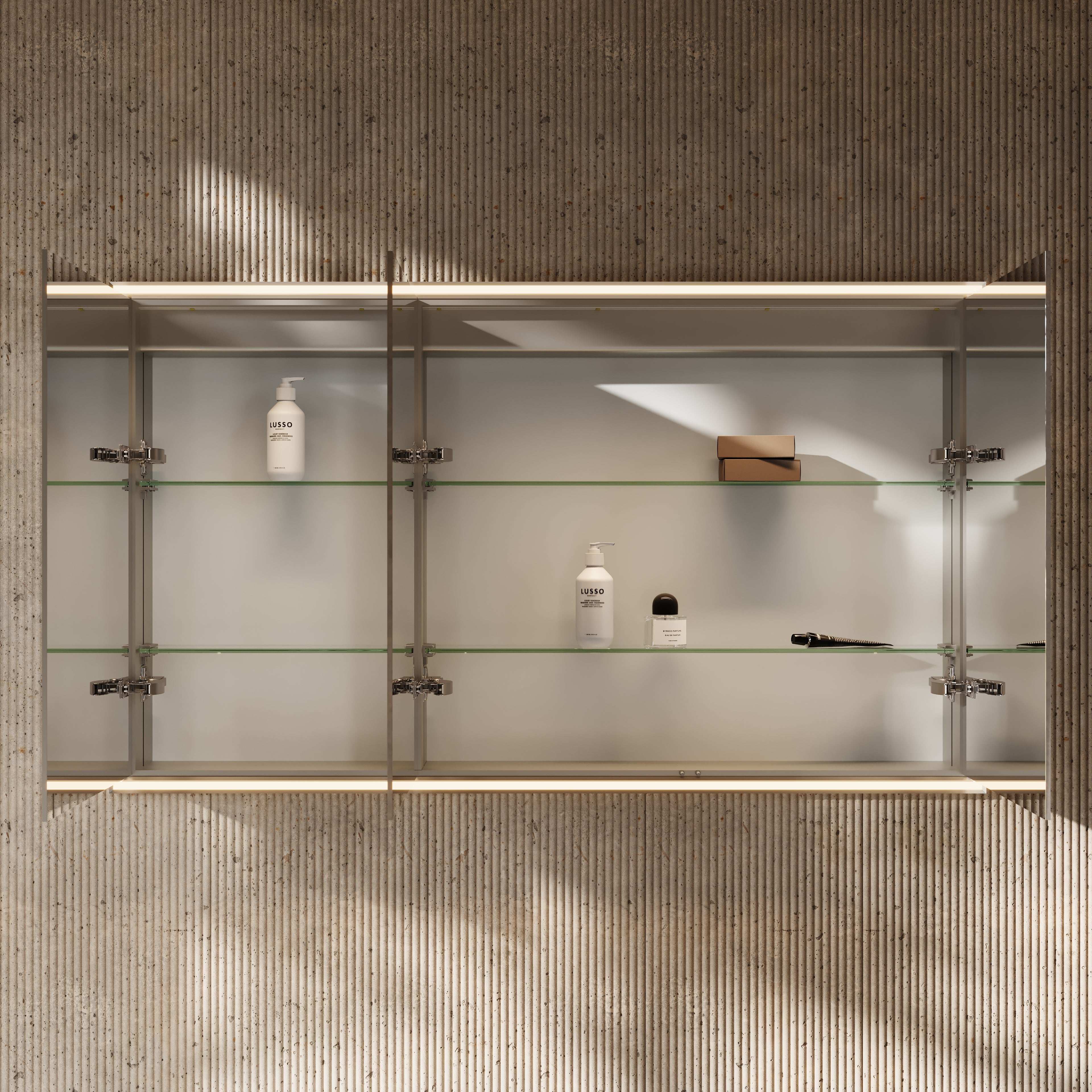 Improve your everyday routine with the Aero Recessed LED Mirror Cabinet by Lusso. A functional piece for modern spaces, the Aero cabinet offers a sleek and contemporary look for your bathroom.