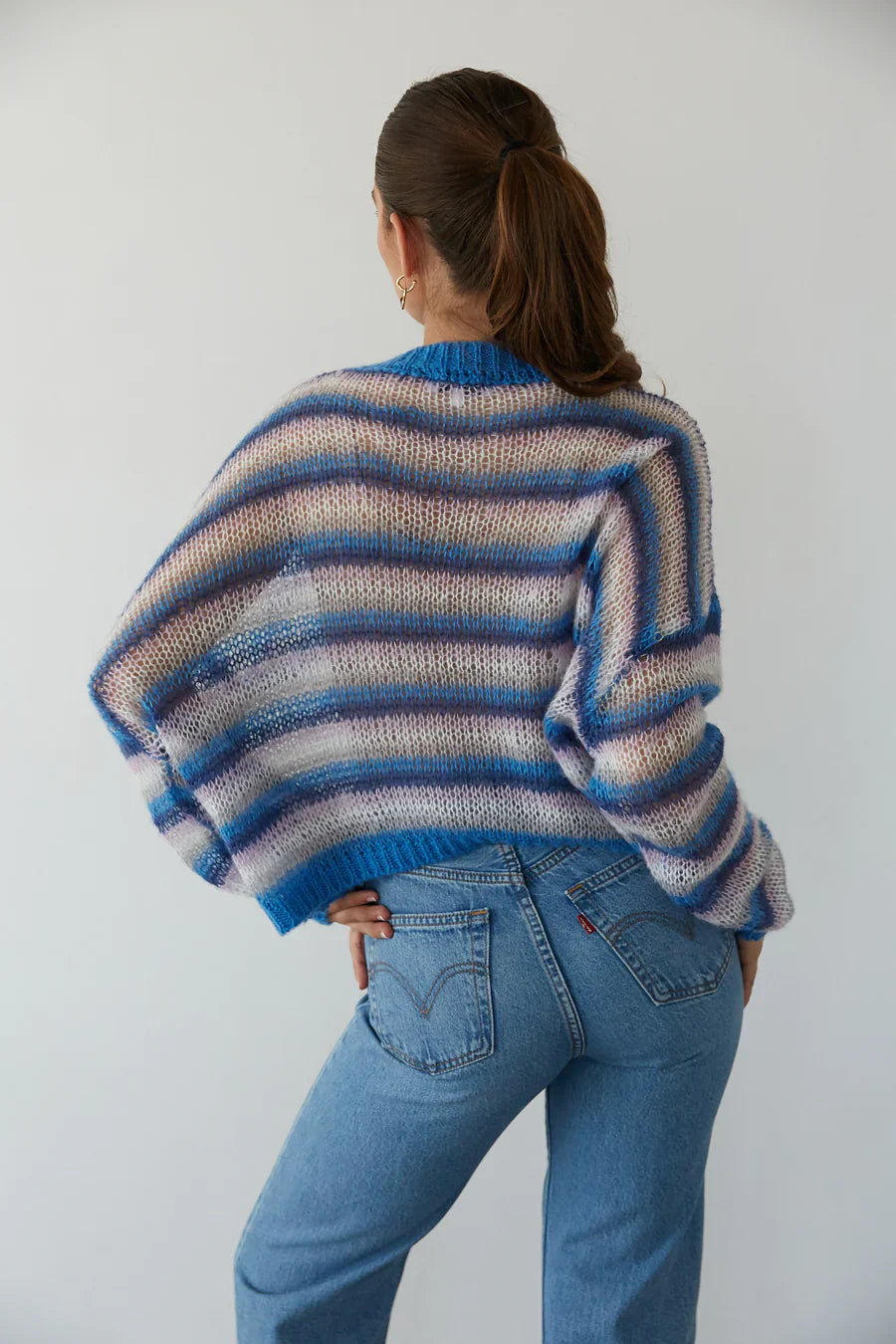 Soak up the nostalgia in the Coraline Loose Knit Striped Sweater! This features a slouchy fit, lightweight knit fabrication, and quirky stripe pattern! Available in Indigo Stripe; pair with some to complete the look!