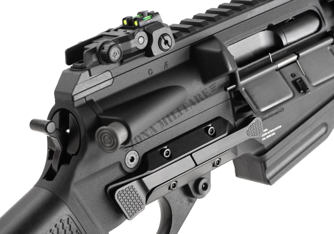 La canna interna utilizzata da 425 mm di lunghezza è fissata a un'unità hop-up rotante per una regolazione precisa e semplice. LevAR genera circa 350 FPS a seconda del gas utilizzato. La canna esterna di copertura termina con una filettatura CCW standard da 14 mm dotata di un dispositivo di volata di tipo birdcage.