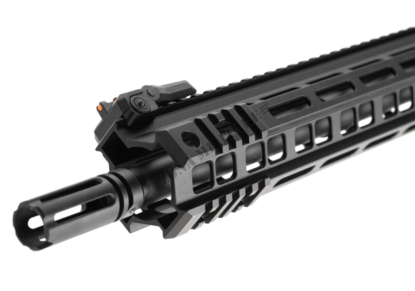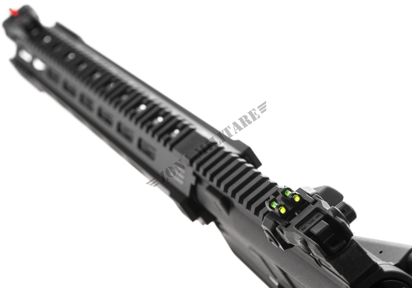 La parte anteriore della replica è dotata di un paramano M-LOK lungo 15 pollici, che ha una singola guida Picatinny in alto e segmenti aggiuntivi più piccoli alle posizioni delle ore 3, 6 e 9. Ciò consente all'utente di personalizzare e adattare le repliche a diverse configurazioni, nonché a requisiti personali, di gioco e di missione. Nel set sono inclusi mirini in ferro pieghevoli e regolabili.