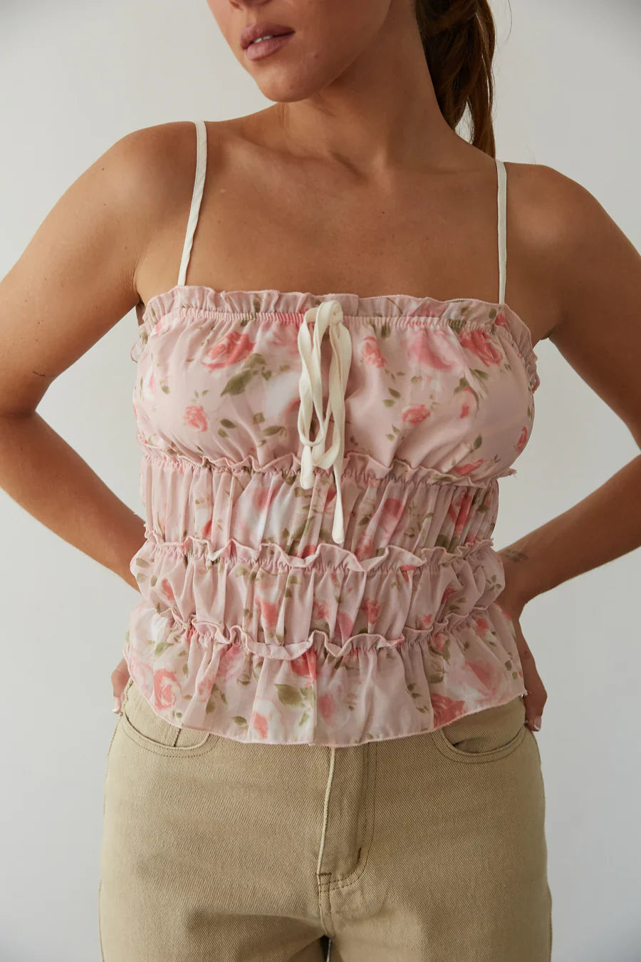 Summer never ends in the Gianna Floral Chiffon Smocked Top! This  features an angelic floral print, chiffon ruffles, and all over smocking! Available in Pink Floral; complete the look with your choice of !
