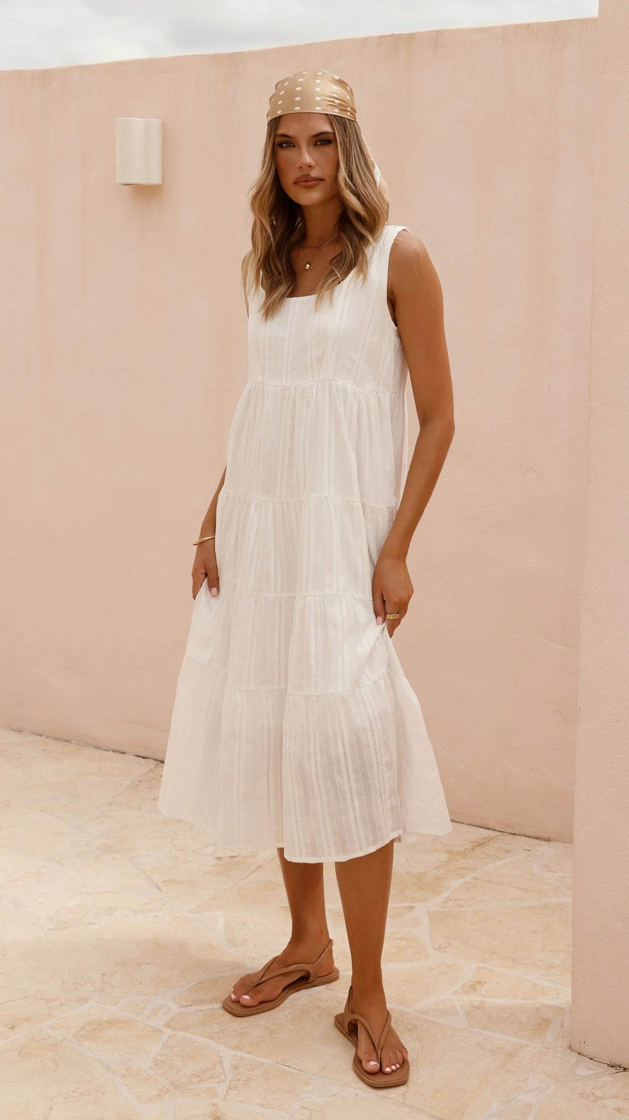 There's something about a white midi in the summer time that gives off that effortlessly stylish look - and our Liza Midi Dress is no exception to this. Featuring a flowy tiered skirt, flattering square neckline and thick straps - this midi is perfect for everyday activities or summer time soirees.