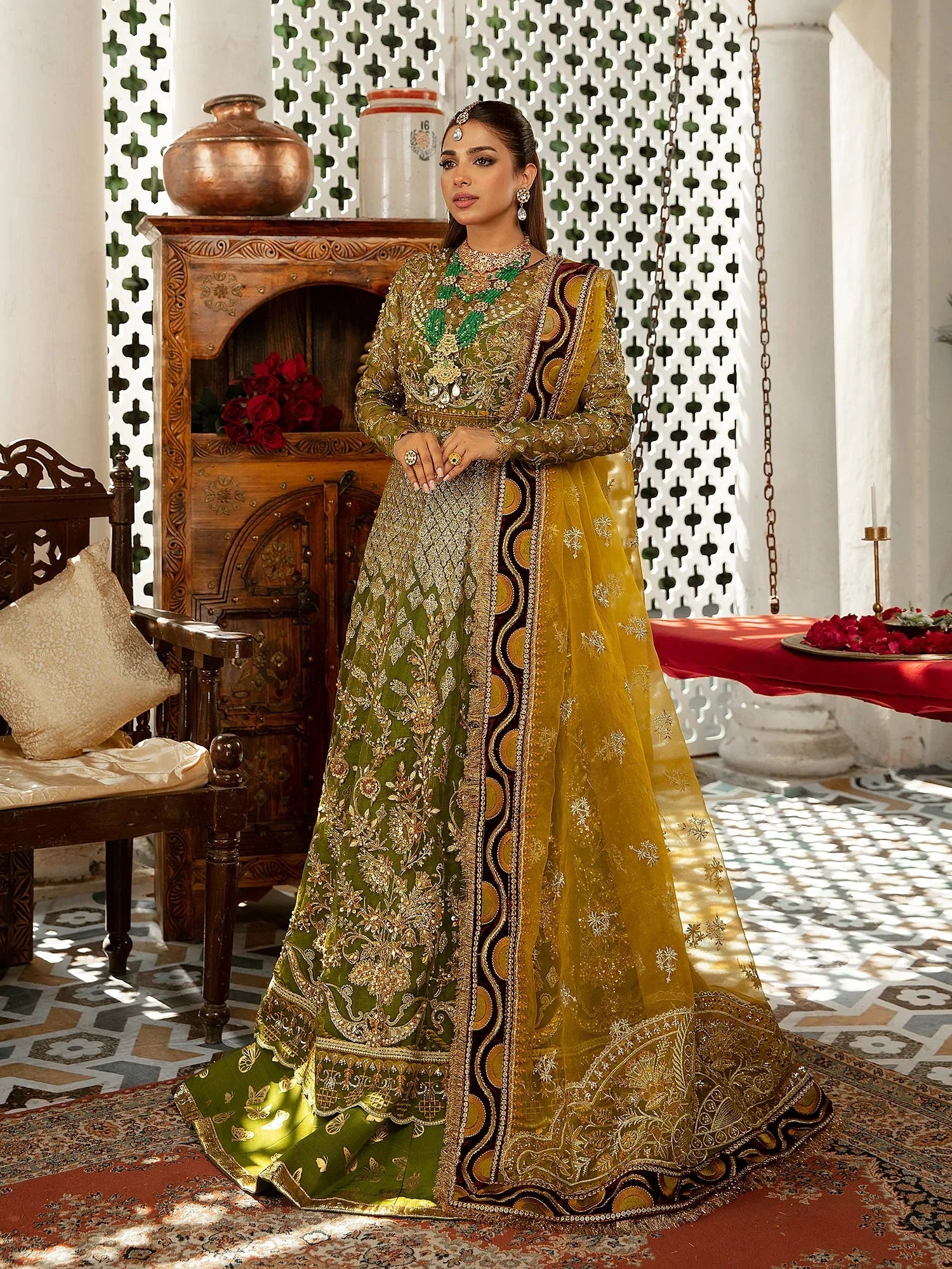 Embroidered sequined dupatta on organza fabric