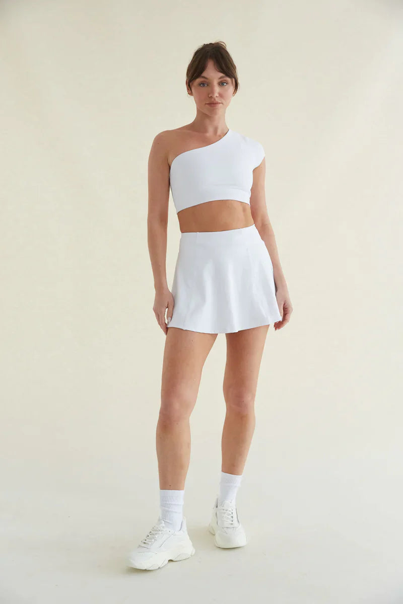 On the move in the Mia Smoothing One Shoulder Crop Top! This activewear crop top features a double-lined bodice with signature 4-way stretch, butter-soft fabric, an asymmetrical neckline, cap sleeve, and comfortable fit that feels like a second skin. Available in , , , and white. Pair with the to complete the look.