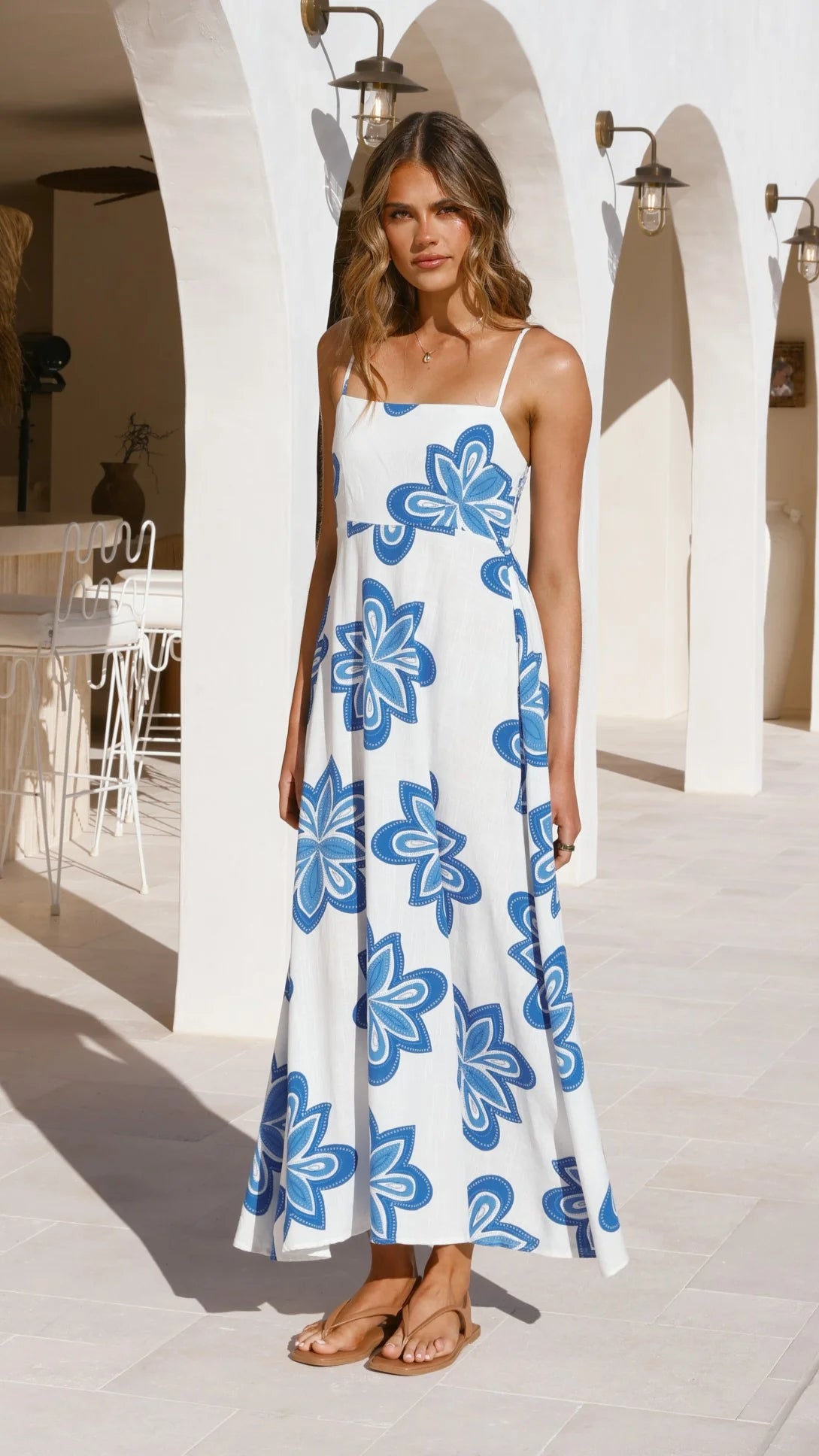 This playful maxi dress features thin adjustable straps and a fitted, lined bust for a flattering fit. The shirred back panel ensures maximum comfort, while convenient side pockets add a practical touch. Perfect for effortless style with a fun, relaxed vibe.