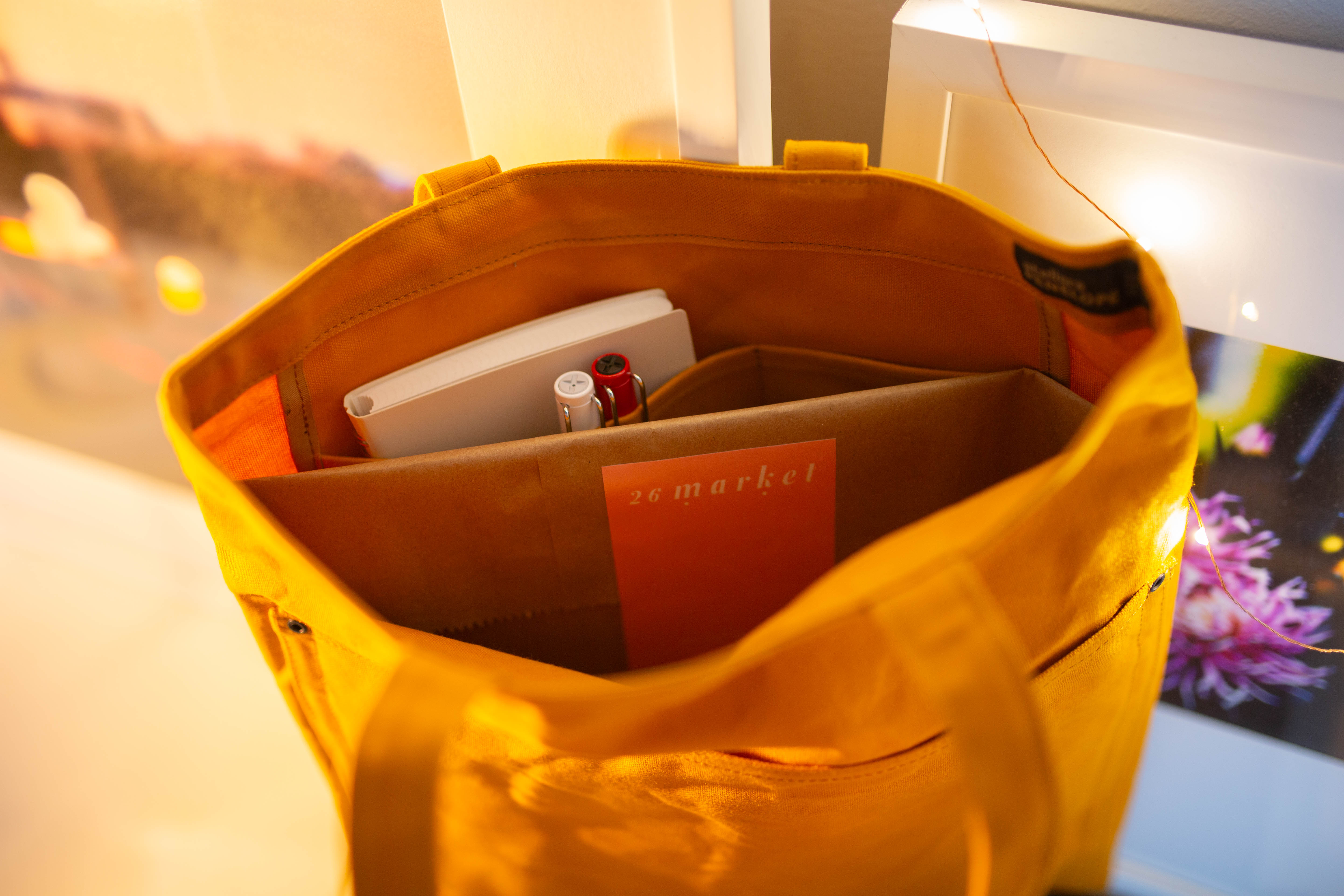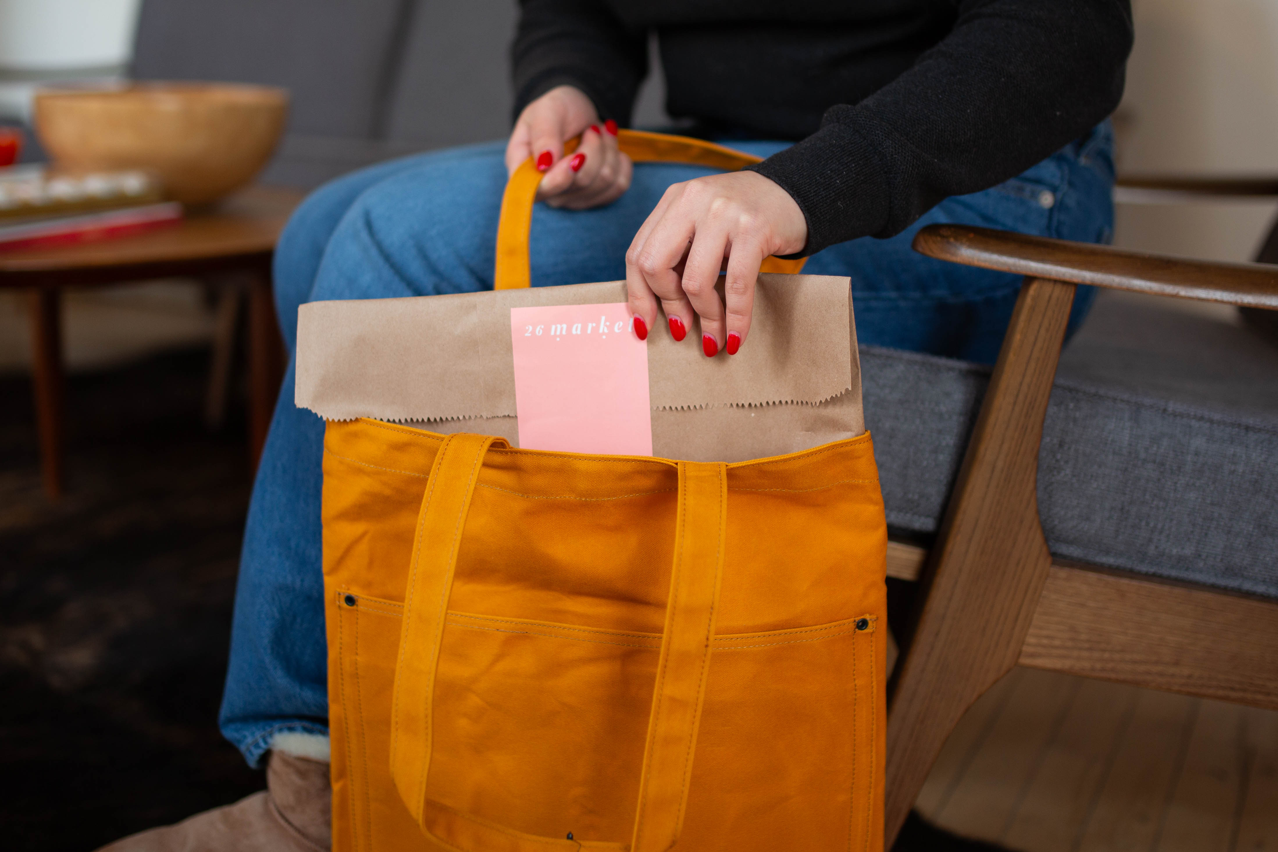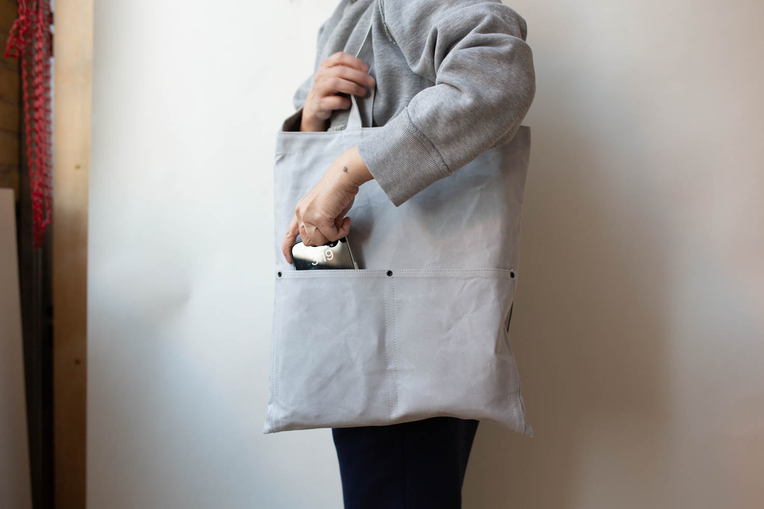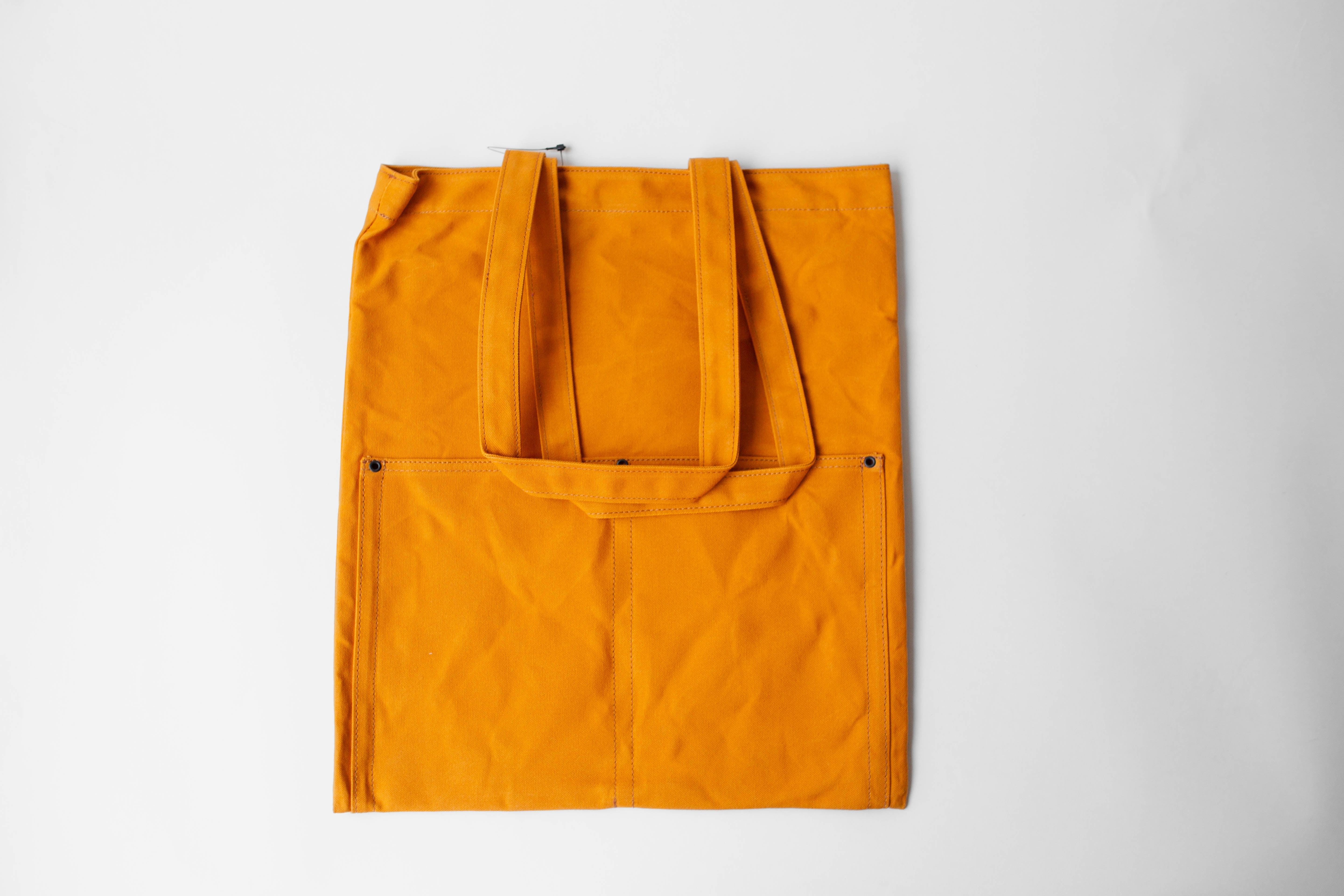 This sleek, gussetless tote bag is crafted from durable No. 10 paraffin canvas, combining practicality with stylish design. Its vertical shape is ideal for organizing documents and laptops, offering a slim profile without compromising on functionality. The long handle ensures easy over-the-shoulder carry, making it convenient for everyday use.