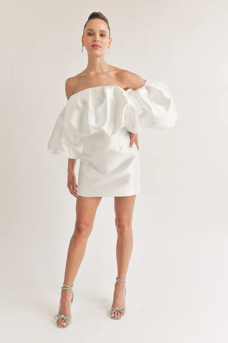 You'll look like you just stepped out of Heaven in the Theresa Off-The-Shoulder Puff Sleeve Mini Dress! This stunning dress features an A-line silhouette and a puffed bodice and off-shoulder sleeves. Pair it with a sleek for an unforgettable look!
