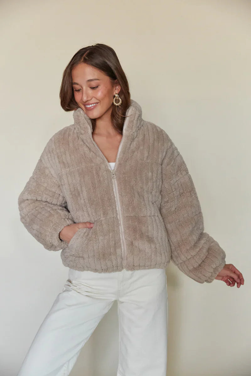 'Tis the season to stay toasty and no better way than with the Winnie Plush Puffer Jacket! This cozy jacket is made of a soft plush material and features a collared neckline, zip front, double front pockets, and an adjustable drawstring hem. Pair with a cute pair of for the perfect winter look!